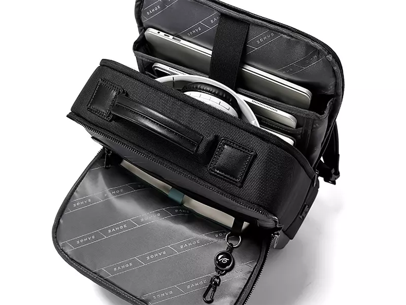 در طراحی کوله پشتی ضد آب بنج پورت USB و Type-C را میبینید که برای شارژ کردن موبایل یا هر دستگاه دیگری قابل استفاده است و در صورت تمایل می توانید به آهنگ مورد علاقه خود گوش دهید. پورتها در قسمت خارجی کیف در سمت چپ قرار دارند و برای جلوگیری از گرد و غبار داراری درپوش هستند.