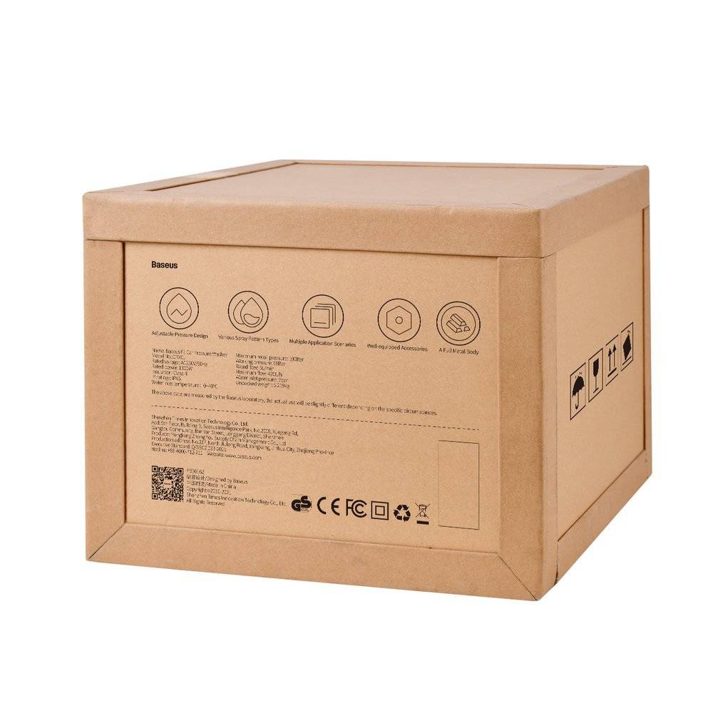 این دستگاه کارواش قابل حمل بوده و میتوانید به راحتی آن را همراه با خود ببرید و مورد استفاده قرار دهید. بدنه کارواش دارای دو دستگیره است که میتوانید با کمک آنها به راحتی Baseus F1 را جابجا کنید. تنها کافی است که شلنگها و نازل را با استفاده از تبدیلهای مخصوص به خود، به یکدیگر متصل کرده و شستشو را شروع کنید. گفتنی است که ابعاد باسئوس برابر با 255×342×175 میلیمتر است و وزنی معادل 5.219 کیلوگرم دارد که با توجه به آنها باید فضای کافی جهت نگهداری را در نظر بگیرید.