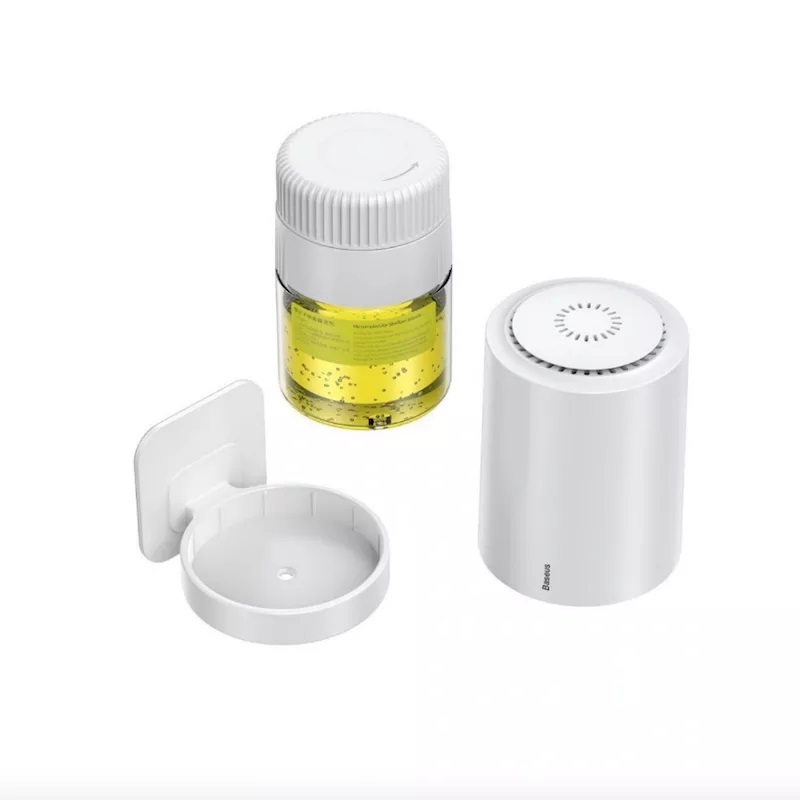 دستگاه تصفیه هوا Baseus Micromolecule Degerming Device از دو قسمت تشکیل شده که یکی محفظه فلزی آن و دیگری محلول می باشد. این محلول ماده ای است که حاوی کرب ، هیدروژن و اکسیژن بوده و جزو میکرو مولکول های فناوری شده جدید هست که دارای 19 الکترون اشباع نشده بر روی لایه بیرونی بوده که می تواند به سرعت الکترون های خارجی ماده را ضبط کند ، خواص آن را تغییر داده و آن را به دی اکسید کربن غیر سمی و بی ضرر تبدیل کند. به زبان ساده تر می تواند گفت وظیفه این محصول تصفیه هوا می باشد نه مخفی کردن آن مانند عطر و ادکلن که هیچگونه فایده ای برای انسان ندارد.