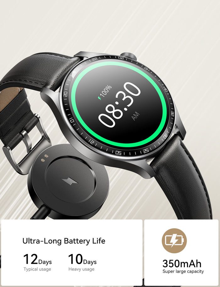 JOYROOM JR-FC2 Pro دارای باتری با ظرفیت بزرگ 350 میلی‌آمپرساعت است که می‌تواند تا 12 روز بدون نیاز به شارژ مجدد کار کند. این ویژگی، این ساعت را به یک همراه بی‌نقص برای سفرهای کاری یا تعطیلات تبدیل می‌کند. دیگر نیازی نیست نگران تمام شدن باتری باشید؛ این ساعت همیشه آماده استفاده خواهد بود.