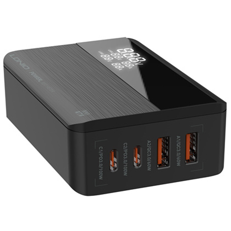 شارژر LDNIO A4809C با حداکثر توان خروجی 100 وات و داشتن 4 پورت خروجی متشکل از 2 عدد USB و 2 عدد Type C می تواند انتخاب خوبی برای میز کارتان باشد. این شارژر به شکل رومیزی و با فناوری ساخت گالیم نیترات GaN طراحی شده است و به عنوان هاب شارژر مورد استفاده قرار می گیرد.