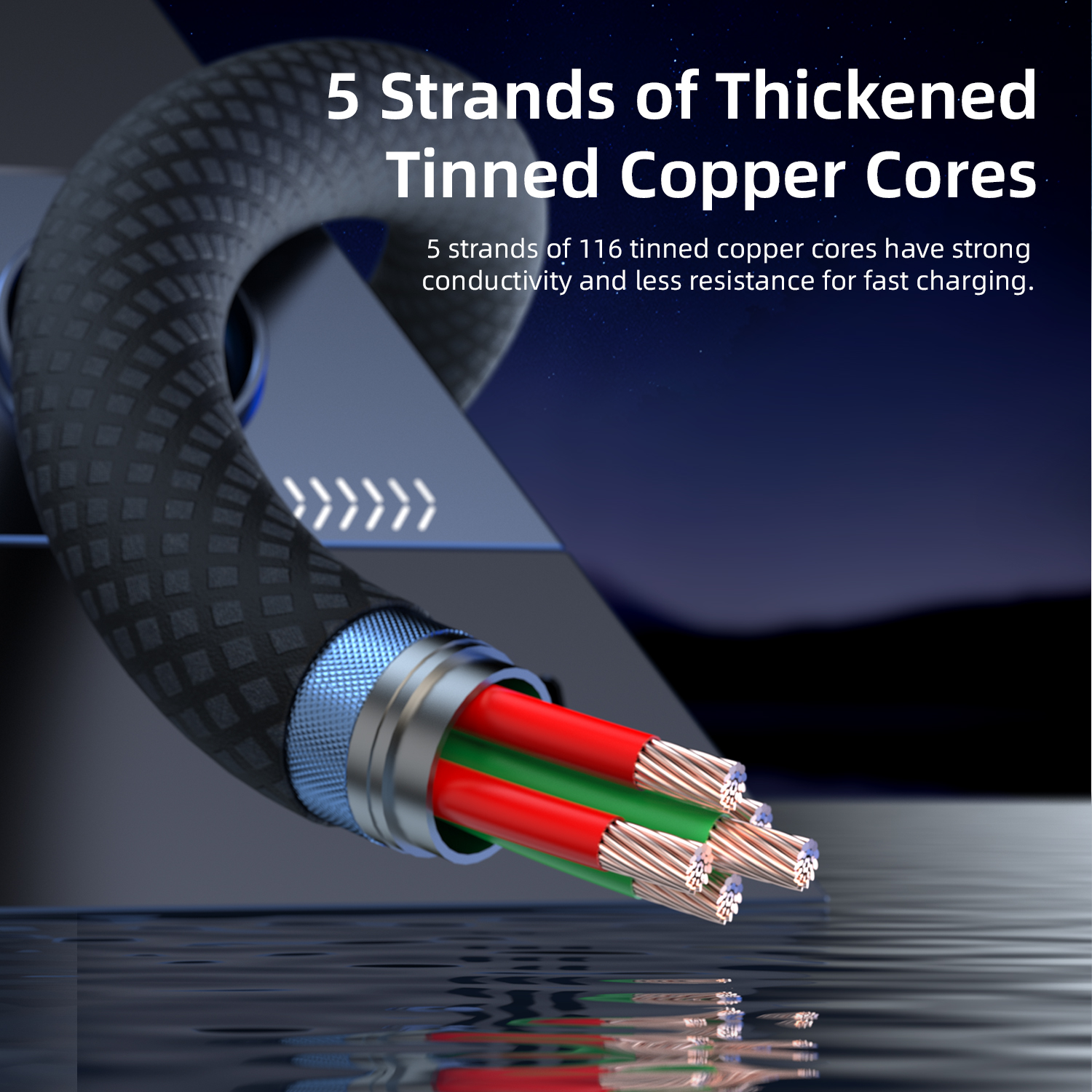 🛡️ ساختار بادوام – ترکیبی از آلیاژ آلومینیوم + روکش نایلون بافته‌شده برای جلوگیری از آسیب، پارگی و گره خوردن.
