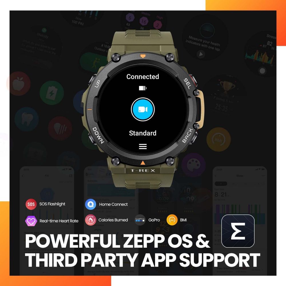 سیستم عامل به کار رفته در تی رکس 2 Zepp Os است. با نصب اپلیکیشن Zepp روی گوشی خود می توانید گوشی را با ساعت سینک کنید تا اعلان های گوشی را روی آن ببینید. این اپلیکیشن با اندروید 7.0 به بالاتر و iOS12.0 به بالاتر سازگار می باشد و در استورهای رسمی قابل دسترس است.